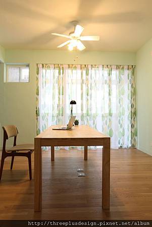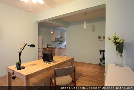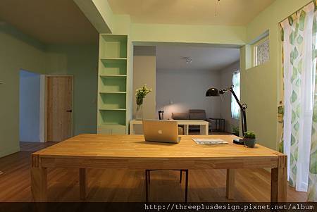 首先一進門後會看到一張原木的大書桌,也是位在整個空間機能的中心處。
